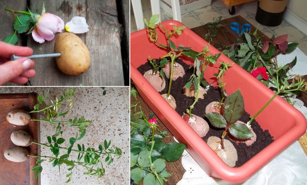 Перед высадкой черенков в горшки для укоренения разрежьте клубни картофеля пополам и вставьте в них черенки на несколько дней. Это позволит отросткам получить необходимые питательные вещества. Затем пересадите черенки (возможно, вместе с клубнем) в почву.