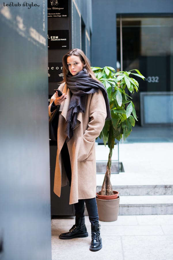 Отдавайте предпочтение классическим кожаным моделям и сочетайте их с тренчем или приталенным пальто. Этот способ позволяет носить шарфы с любым пальто, имеющим пояс. Просто заправьте длинный палантин под него, и вы удивитесь, как свежо будет выглядеть классическое пальто-халат.