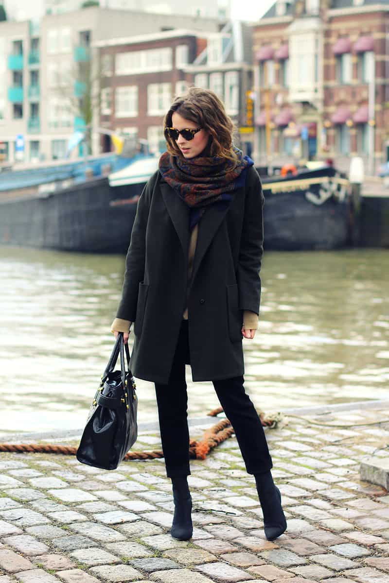 Классическое мужское пальто отлично сочетается с шарфом, который выглядит так, будто взят из мужского гардероба. Обратите внимание на классический клетчатый шерстяной шарф или вязаный серый либо черный аксессуар, который можно просто обернуть вокруг шеи, оставив длинные концы свободно свисать к низу пальто. Не стоит слишком туго затягивать шарф, так как легкая небрежность придаст вашему образу расслабленный и непринужденный вид.