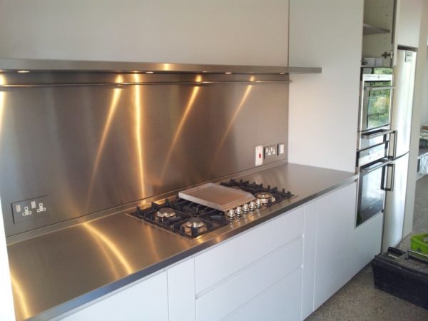 Листовая нержавеющая сталь будет гармонировать с любой отделкой. Стальные листы позволяют скрыть все недостатки стен. Благодаря металлу, комнате можно придать дополнительный объем и декоративность.