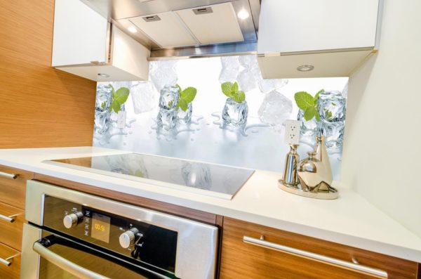 При правильном выборе отделки и соблюдении рекомендаций по нанесению, она по эксплуатационным характеристикам и легкости ухода не уступит стеклянному фартуку. Широкий ассортимент дизайнов позволяет найти идеальный вариант для любой кухни.