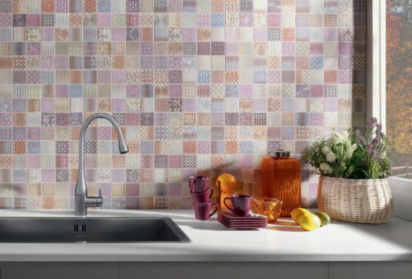 Фартук из яркой и нестандартной плитки