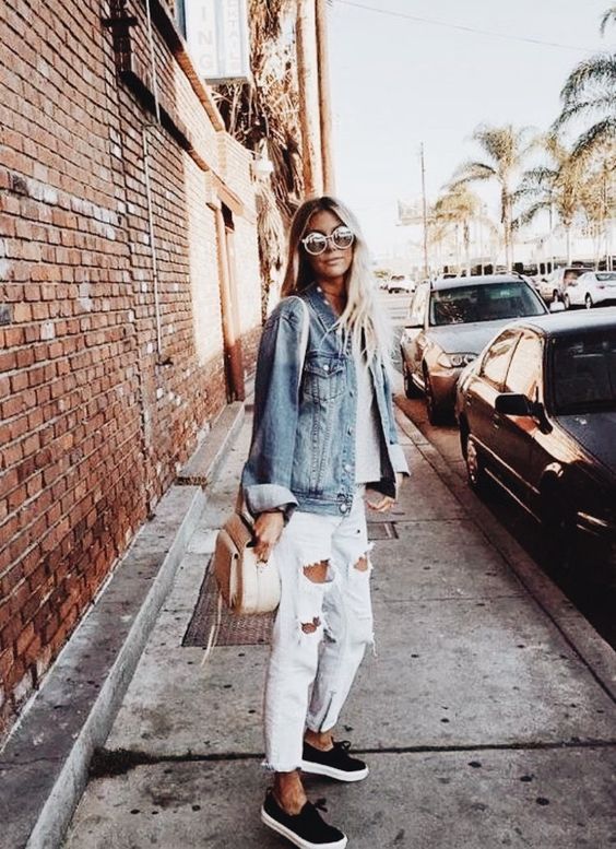 | 23. Деним на дениме | Джинсовая куртка, джинсовая рубашка | Белые кеды, рюкзак |