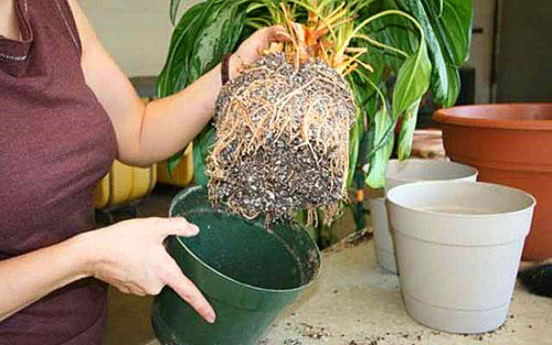 - Корневая гниль: Если корни стали мягкими и черными, необходимо удалить растение из горшка, обрезать пораженные корни и пересадить в свежую почву.