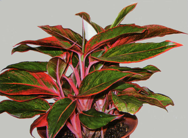 Яркий сорт красной Аглаонемы с крупными сердцевидными листьями. Окраска варьируется от светлого до темного зеленого, обрамляющего центральную жилку и края листа.