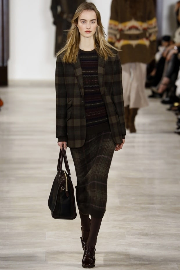 Из материалов приветствуются натуральные: твид, шерсть, хлопок, букле, джерси. Цвета рекомендуются спокойные, сдержанные: синий, хаки, темно-зеленый, все оттенки коричневого, серый. Принты – это, конечно же, клетка во всех ее разновидностях.