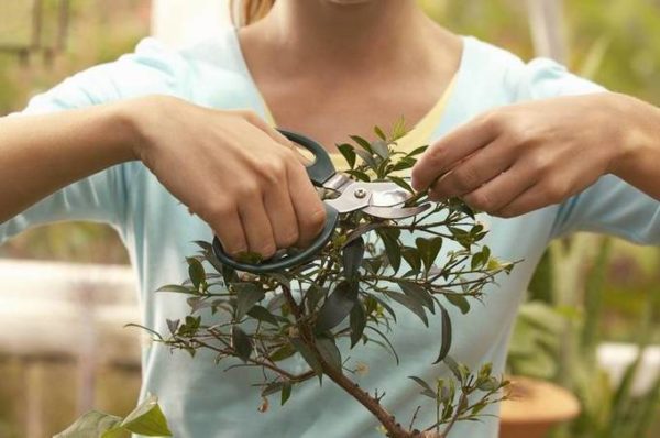 Процедура позволяет сформировать большой и пышный кустик. Проводится обрезка после окончания периода цветения. Наточенным, прошедшим дезинфекцию инструментом, следует удалить большие и крупные ветки, а также растущие внутрь куста. Затем, обрезаются больные, слабые побеги и те, на которых нет цветков.