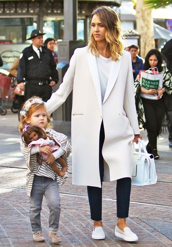 Обратите внимание на стильный образ Джессики Альбы во время прогулки с дочерью. Однако стоит учесть, что цвет пальто лучше выбрать менее маркий, чтобы избежать лишних затрат на химчистку.