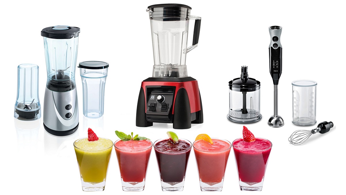 Агрегаты имеют различные конструкции и способы применения. Погружные блендеры с длинной ручкой и насадками отличаются от стационарных моделей, которые устанавливаются на поверхность и имеют свою емкость.