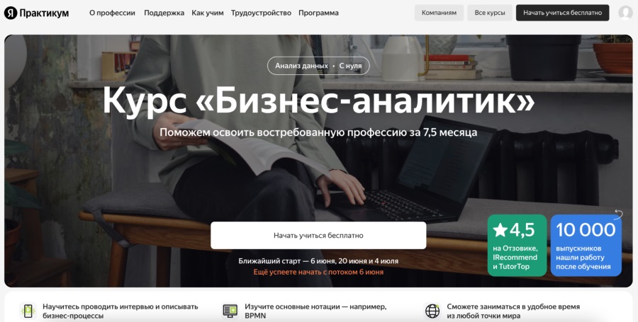 | Яндекс.Практикум (Курс “Бизнес-аналитик”) | Практический подход, реальные проекты, обратная связь от экспертов, гибкий график. | |