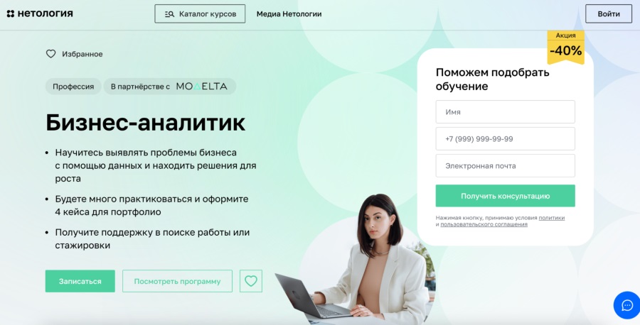 | Нетология (Профессия Бизнес-аналитик) | Актуальные инструменты и методики, работа с данными, подготовка к сертификации, карьерные консультации. | |