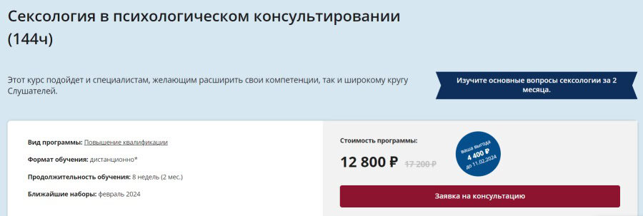 Национальная академия дополнительного профессионального образования (НАДПО): Курс “Сексология в психологическом консультировании”