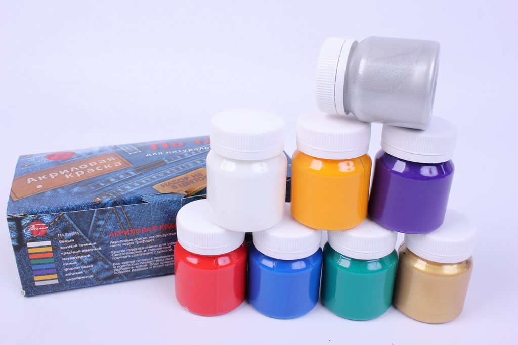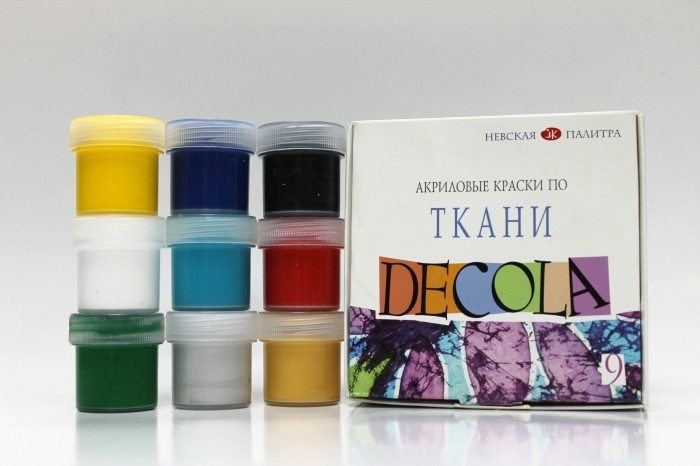 Для покраски используют натуральные, анилиновые, пластизолевые, акриловые, штемпельные на основе масла, глицерина или спирта красители. Натуральные и анилиновые применяют для натуральных тканей или смесовых с небольшой примесью синтетических волокон – до 40%.