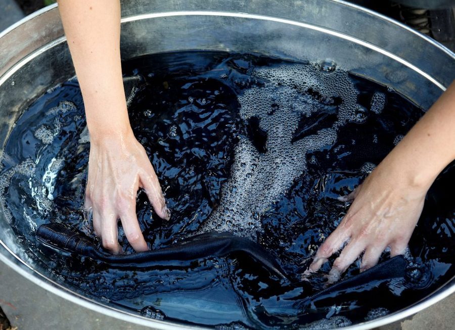 До начала работы вещь нужно постирать, высушить, избавиться от пыли и жирных пятен, разровнять все складки. Обязательно нужно надевать перчатки и респиратор, чтобы химические составляющие краски не раздражали слизистые оболочки. После окрашивания первую стирку проводят вручную, а сушат на открытом воздухе, избегая попадания прямых солнечных лучей.