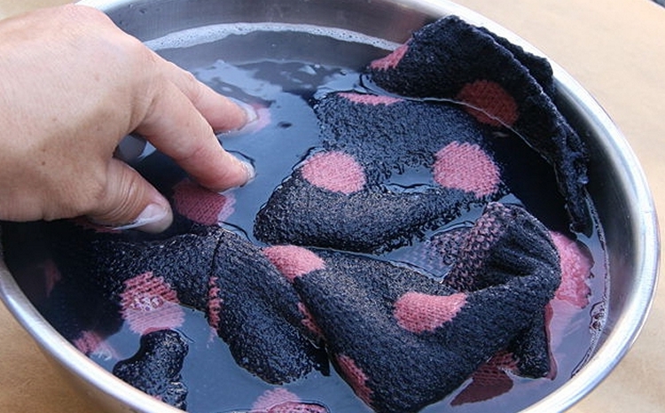 - Замочить вещь в полученном растворе, оставив на 24 часа;