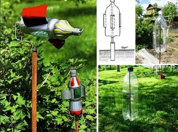 - ловушки из пластиковых бутылок. Понадобится три бутылки, одну обрезаем, чтобы получить трубу, от двух других используем верхние части. Надрезаем горлышки бутылок на полоски, вставляем в «трубу», зверек проникает в трубу, а боратного хода ему нет.