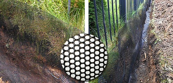 Пластиковую сетку с небольшими ячейками закапывают в землю на глубину не менее 70-80 см, а то и больше. Проделывают эту работу по всему периметру участка.