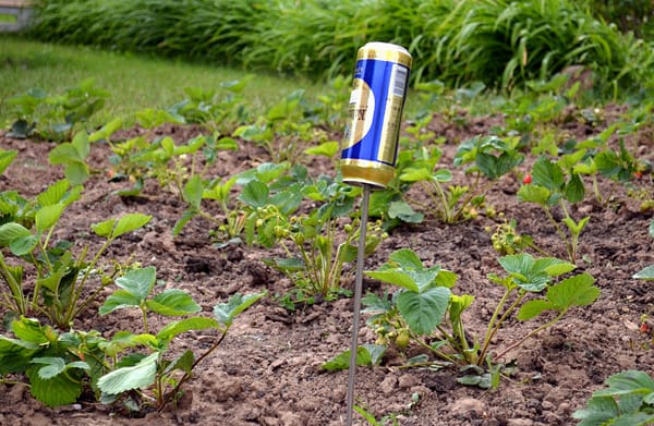 - Наденьте алюминиевые банки из-под пива и тоника на арматуру;