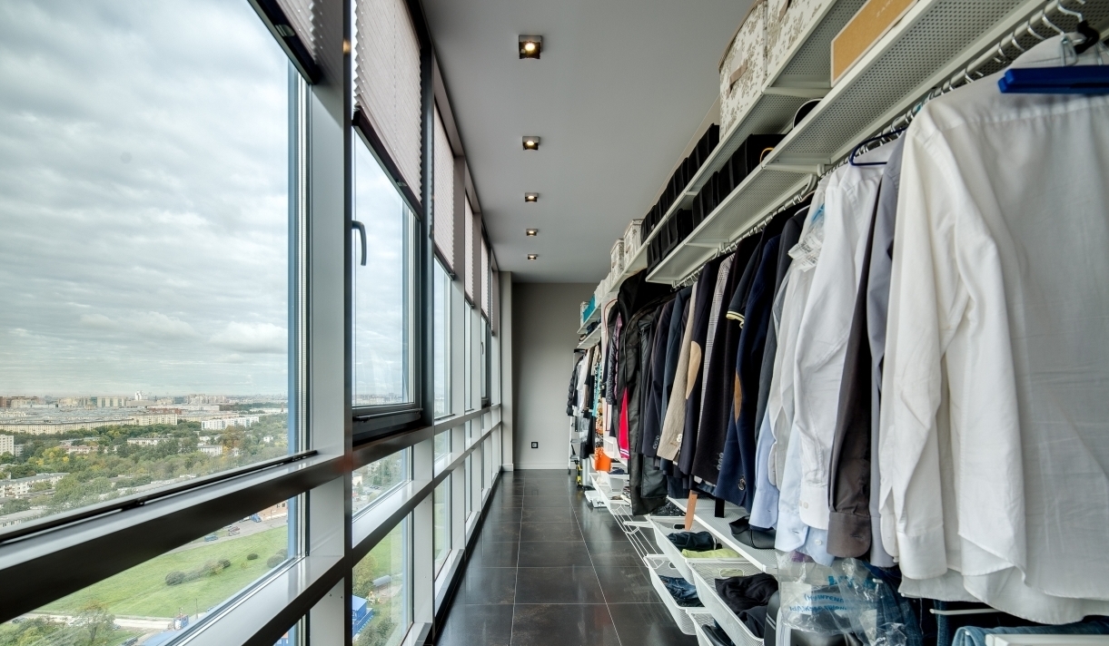 Балкон при правильном планировании места может поместить гардероб любой модницы. В магазинах продаются готовые бюджетные варианты шкафов, стеллажей, полок для одежды и обуви. Главное, чтобы системы хранения сочетались с особенностями гардероба.