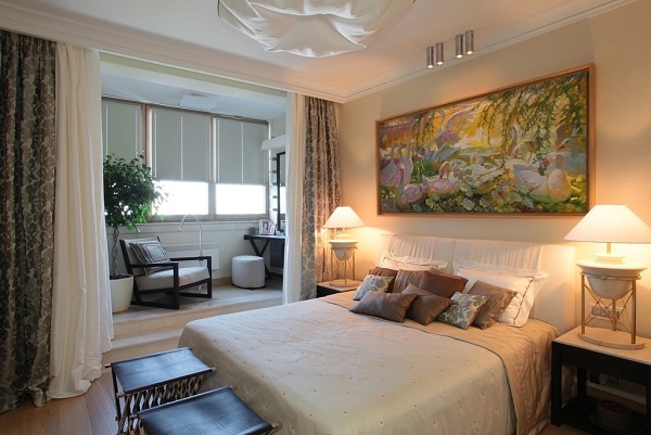 В случае если в маленькой спальне есть балкон, возможны варианты перепланировки с добавлением полезной площади. Туда можно вынести кресла, столики или обустроить систему хранения вещей. Если нет возможности переноса стен, на балконе можно устроить рабочее место или встроить шкафы.