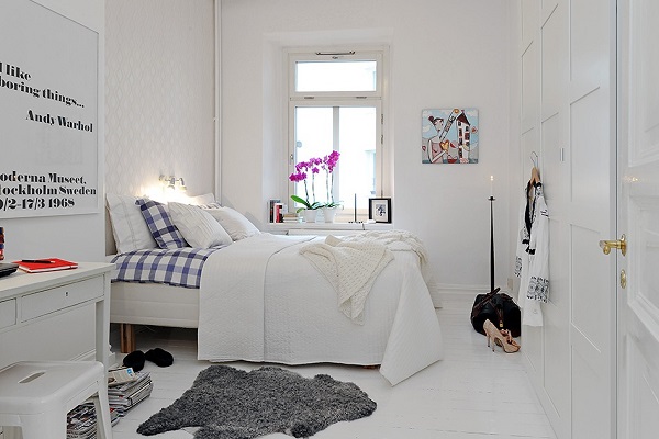 Прежде чем принять решение, стоит хорошо подумать. Белая спальня не всегда способствует отдыху. Если окна выходят на восток, восходящее солнце может разбудить вас раньше времени. Если вы не хотите менять решение, позаботьтесь о плотных шторах.