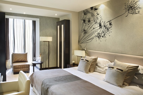 Рельефные обои или фотообои могут стать достойным украшением маленькой комнаты. Только не надо их клеить на всю поверхность, достаточно одной стены или небольшого участка. Картинка будет смотреться интересно, если это не похоже на обклеенную со всех сторон изнутри коробочку, похожую на замкнутое пространство. Цветовая палитра подойдет теплых тонов, не слишком ярких, но и не блеклых. Для светлых помещений можно подобрать и более холодные оттенки.
