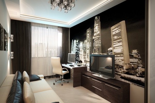 Мужская спальня отличается от семейной или женской, что зависит от образа жизни владельца. Важно предусмотреть место для телевизора, аудиосистемы, рабочего стола и мини-бара. Если пространство ограничено, предпочтение может быть отдано складному или трансформируемому дивану вместо полноценной кровати. В отделке преобладают темные, насыщенные оттенки, а аксессуаров немного. Стены часто украшают спортивные трофеи или сувениры из путешествий.