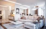 Для отделки обычно выбирают краску и однотонные полы. Узорная плитка и сложные текстуры могут «утонуть» в интерьере и сделать его тяжелее. Чтобы избежать громоздкой мебели, занимающей много места, можно использовать ниши из гипсокартона, создать подиум или собрать модульные конструкции из полок и ящиков. Обратите внимание на трансформируемые и складные столики, тумбы и кровати.