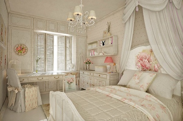 Для молодой девушки туалетный столик с зеркалом и ящиками станет важным элементом интерьера. Потребуются полки для статуэток, талисманов и сувениров. Цветовая палитра может включать белые, розовые и бежевые оттенки. Рассмотрите круглую кровать с балдахином для создания уютной атмосферы.