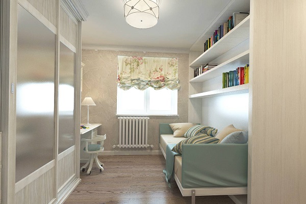 Для маленькой леди будет уместен розовый, обилие рюш, оборок и цветочных узоров. В качестве спального места подойдет диван, кушетка или подиум. Письменный столик, который впоследствии станет туалетным также очень нужен. Обязательно стоит помнить о месте для игрушек, рукоделия и игр с подругами.