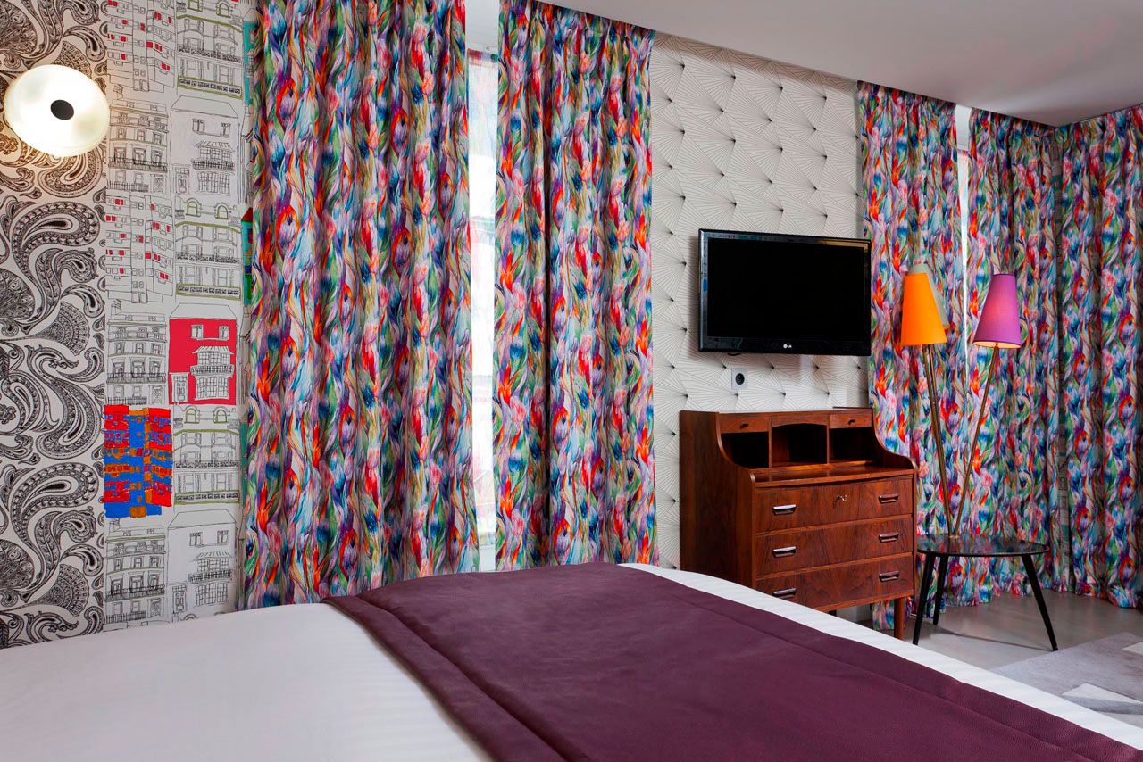 «Поп-арт» — это направление с яркими и провокационными цветами, близкое молодежи и подходящее для объединенных пространств спальни и гостиной.