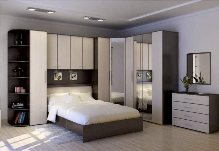 Если стены спальни имеют выступы, то под каждый из них следует выбрать мебель отдельно. Так можно выиграть лишнее место в комнате. Хорошим вариантом будет мебель под заказ, тогда мастер сможет задействовать каждый выступ и все ниши.