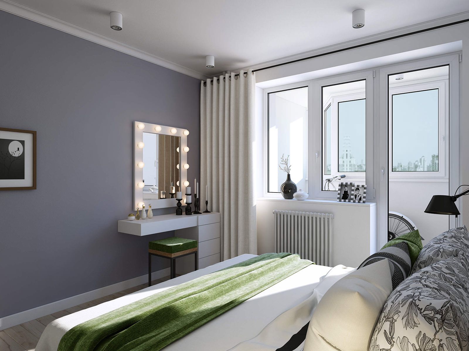 Не выбирайте громоздкое трюмо; оно должно быть компактным для хранения необходимых вещей. Если места для шкафов не хватает, можно заменить его на небольшой комод с зеркалом.