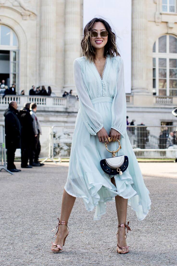 К любому наряду следует подобрать аксессуары и украшения, которые подчеркнут образ, сделают его более дорогим и трендовым. Сегодня в моде маленькие сумочки необычных форм, крупные оригинальные украшения, остроносые лодочки и босоножки с почти невидимыми ремешками.