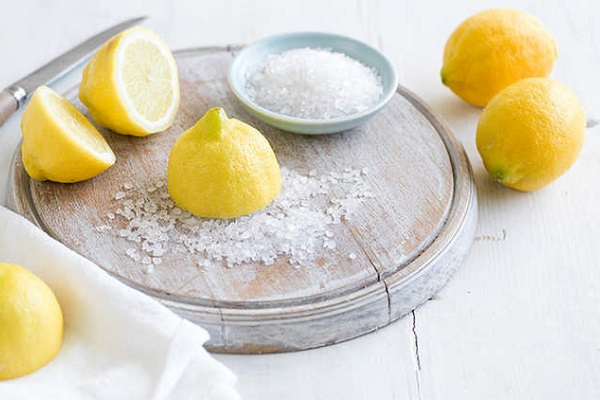 Не менее результативный способ убрать засаленности на пуховике. Лимон можно без проблем купить в любом продовольственном магазине, а поваренная соль найдется на любой кухне.