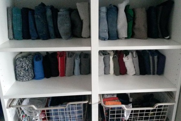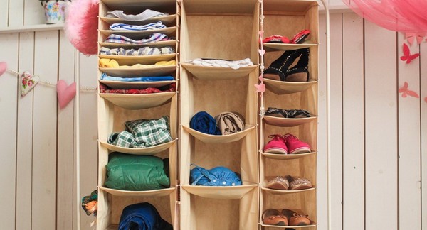Если хотите убрать вещи на зиму и хранить стопками, складывайте тяжелые трикотажные платья, юбки и футболки вниз, а легкие синтетические шорты и майки наверх – это уменьшит деформацию ткани. Если же хотите спрятать коробки с кроссовками и кедами, храните их под кроватью или уберите на шкаф.