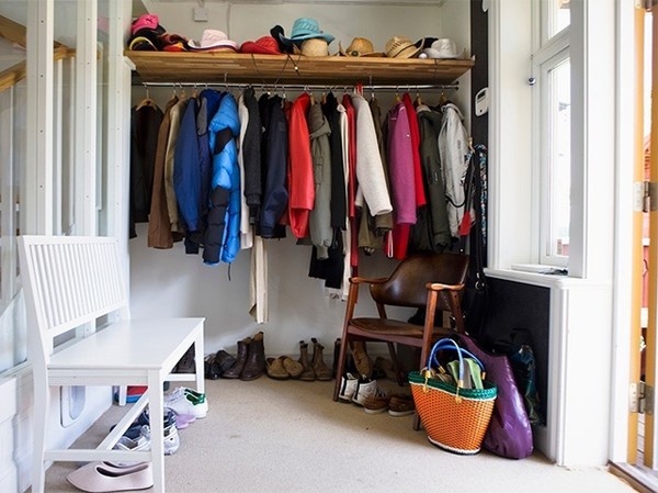 При планировке пространства часто упускают свободное место под потолком. Установка навесных полок позволяет создать дополнительное место для хранения зимней одежды и аксессуаров.