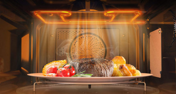 В микроволновой печи в режиме гриль можно приготовить мясо с корочкой, как на мангале. В режиме конвекции можно готовить пищу, нагревая ее максимально равномерно и сохраняя все полезные качества продуктов.