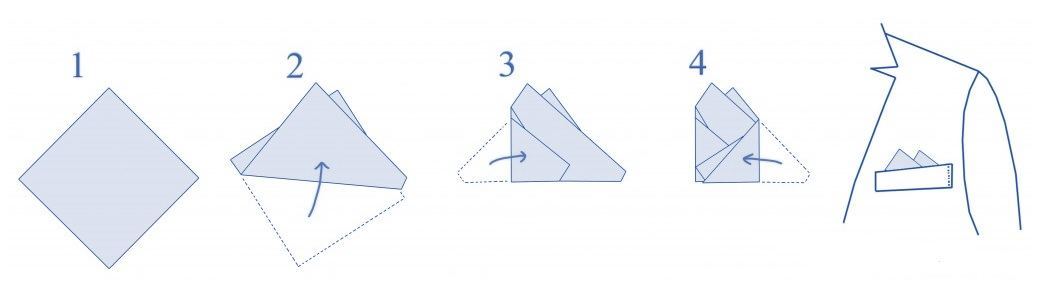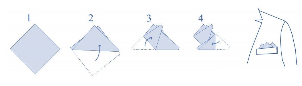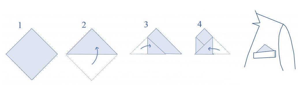 - Поместите платок в карман, сгибами внутрь, острым углом вверх.
