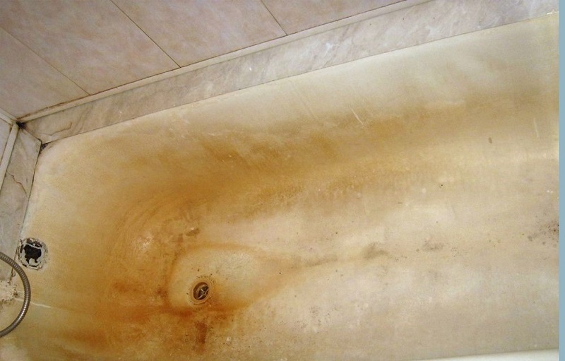 Непрезентабельный внешний вид сантехнического оборудования создает коричневая ржавчина и белый налёт от жесткой воды. Серые пятна, ржавые потёки, а также желтизна – все это портит привлекательность белоснежной ванны. Следует знать, что известковый налет образуется на дне из-за длительного контакта жесткой воды с эмалью. Обычно такие отложения серого цвета.