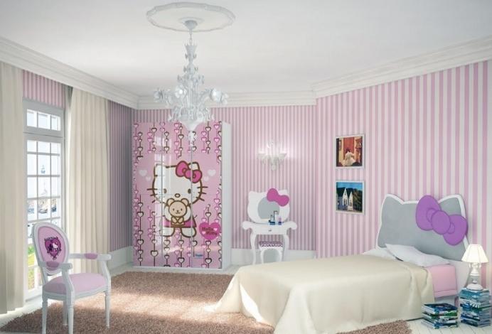 Если девочка маленькая, то помещение можно разбавить необычным принтом мебели или бумажными настенными цветами или наклеек с мультяшными героями. Можно добавить яркий текстиль на кровать. Для подростка комнату украшают фотообоями постерами с любимыми героями или актерами. Популярные 3д-картины.