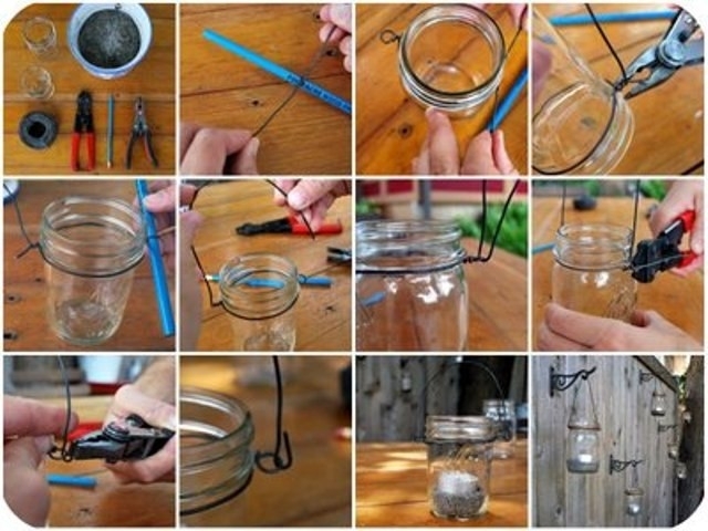 Преобразуйте ненужные бутылки и банки в оригинальные светильники. Просто покрасьте их в яркие цвета или обмотайте веревкой, а затем установите в них свечи или светодиоды. Это создаст уютную атмосферу в вашем дворе, особенно в вечернее время.