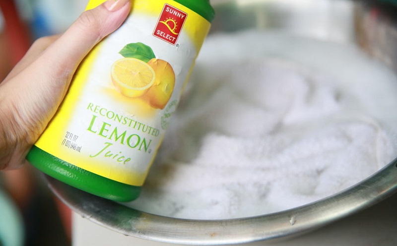 Кто бы мог подумать, что лимонная кислота может стать прекрасным отбеливателем белых вещей. Для отбеливания пары носочков будет достаточно одного лимона или столовой ложки гранулированной лимонной кислоты. В 1000 мл. теплой воды растворите сок одного лимона или столовую ложку лимонной кислоты, поместите носочки в тазик с приготовленным раствором.