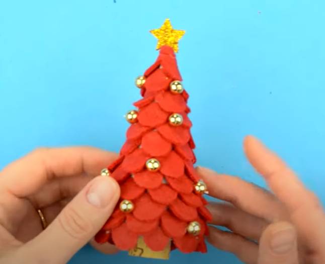 - Украсьте елочку бусинами, стразами и другими декоративными элементами.