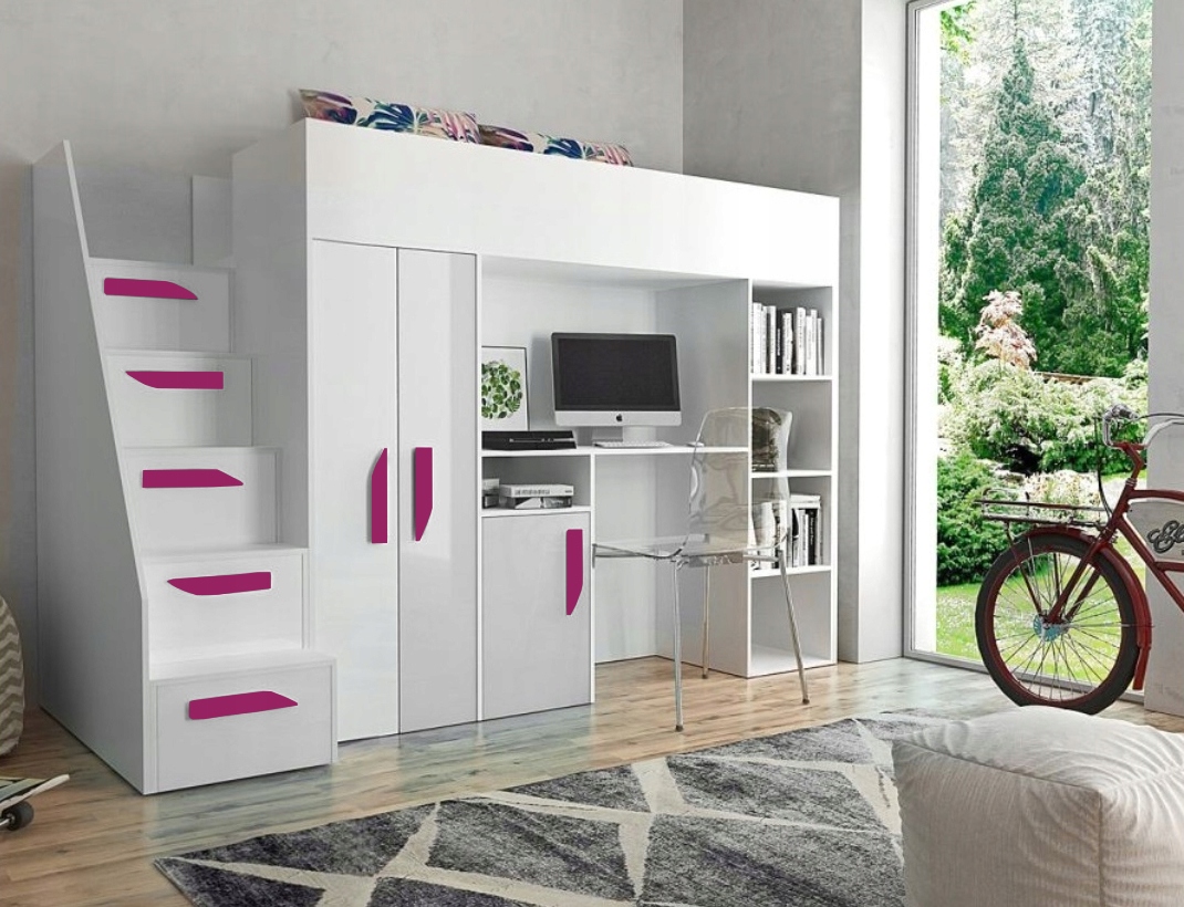 Кровать-чердак — это разновидность двухъярусной кровати, у которой в нижней части вместо спального места находится письменный стол, комод или другая мебель. Такой предмет интерьера незаменим, если перед вами стоит задача экономии пространства.