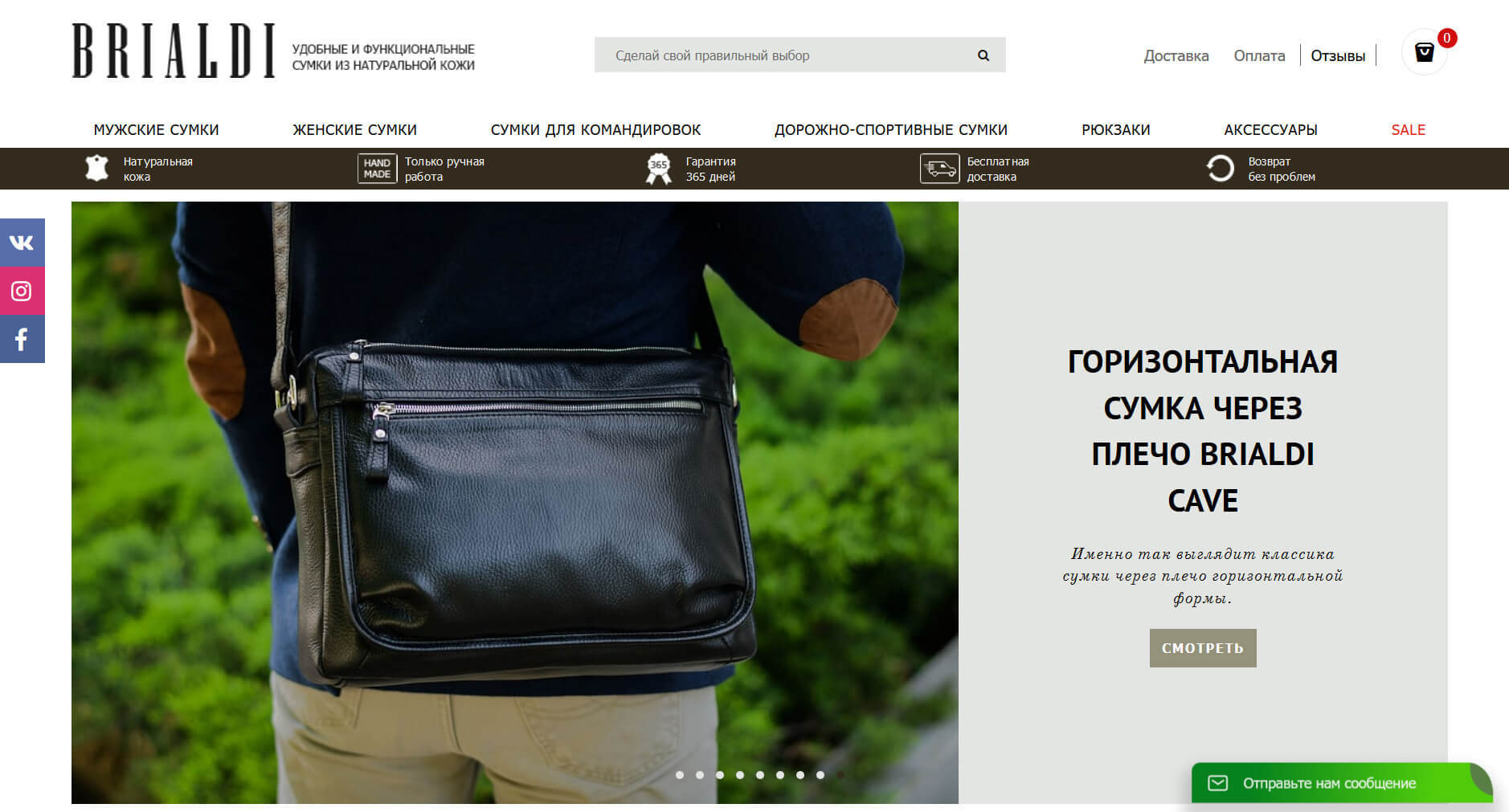 На веб-странице магазина российского бренда Brialdi представлен обширный ассортимент удобных и практичных сумок, изготовленных из высококачественной кожи. В каталоге можно найти как мужские, так и женские модели, а также варианты для командировок, путешествий и занятий спортом. Цены находятся в среднем диапазоне.