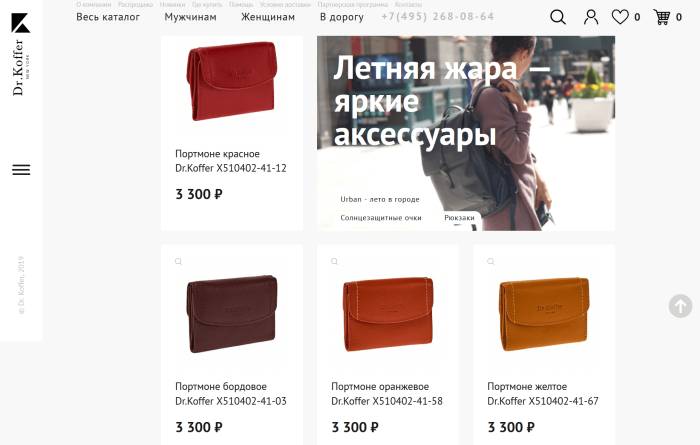 Компания Dr.Koffer предлагает стильные сумки и аксессуары для делового использования, а также товары для путешествий. В интернет-магазине бренда можно найти коллекции для мужчин и женщин, а также специальные предложения для поездок в ценовом сегменте выше среднего.