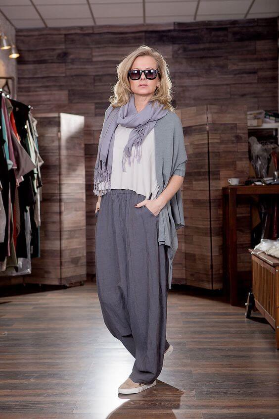 Для передвижения по городу оптимально выбирать комфортные широкие брюки и свободную блузу. Чтобы добавить интересные детали в образ, можно использовать кардиган и легкий шарфик, создавая многослойный стиль.