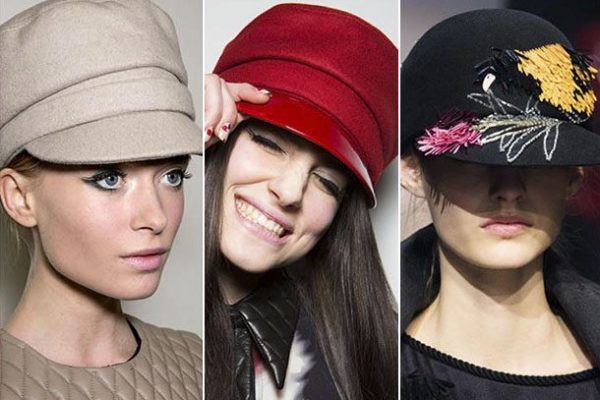 Стилисты предлагают заменить традиционные женственные шапки на обновленные кепки. В предыдущих коллекциях встречались модели с шипами и стразами, но сейчас популярны головные уборы в морском и милитари стилях. Коллекции Dior и Chanel возвращают модниц в атмосферу 60-х, когда многие женщины носили кепки в мужском стиле.