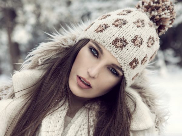 Для лиц с ярко выраженными скулами подойдет спортивная шапка с небольшим отворотом и крупным декором. Цвет должен гармонировать с оттенком глаз. Нежные бежевые или персиковые тона подойдут голубоглазым девушкам.